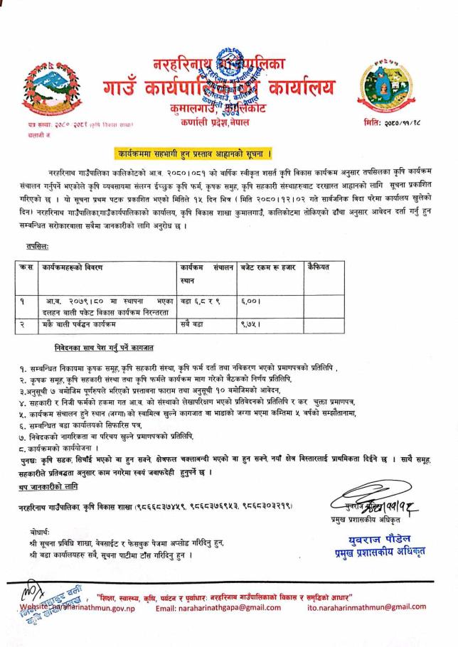 कार्यक्रममा सहभागी हुन प्रस्ताव आह्वानको सूचना ।