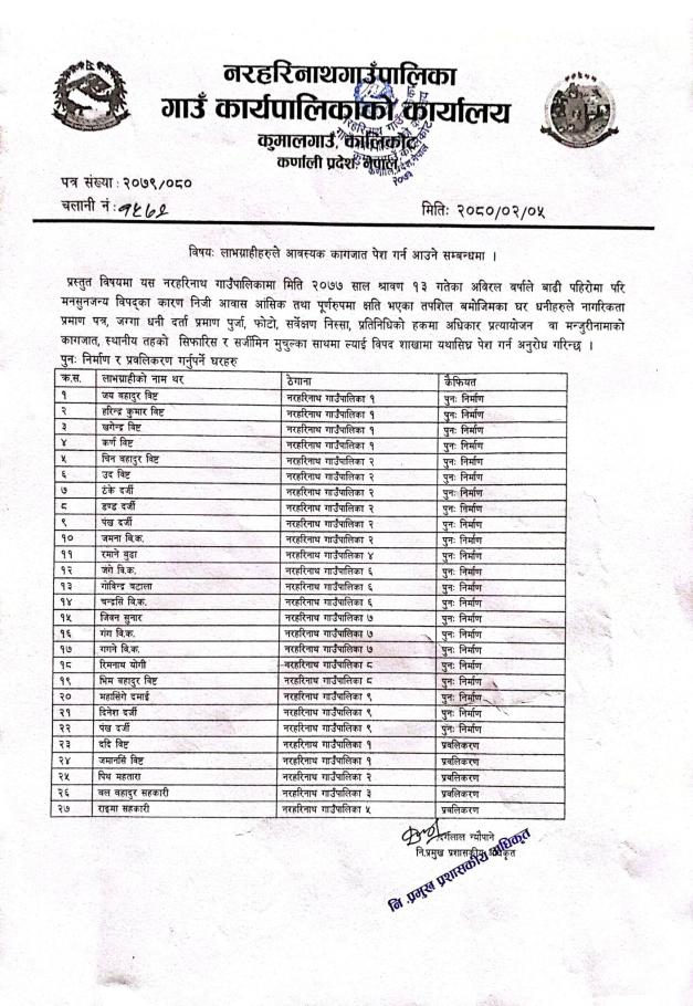 » लाभग्राहीहरुले आवश्यक कागजात पेश गर्न आउने सम्बन्धी सूचना ।