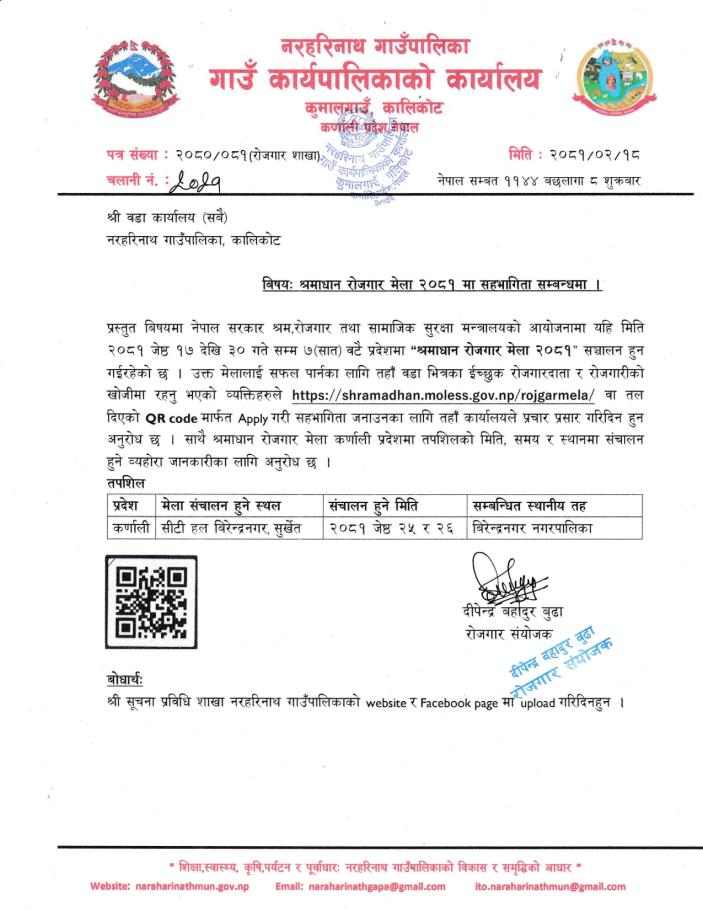 श्रमाधान रोजगार मेला २०८१ मा सहभागिता सम्बन्धमा ।