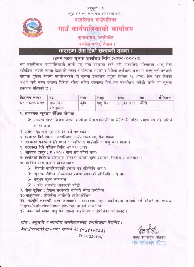 » सामाजिक परिचालक सेवा करारमालिने सम्बन्धि सूचना ।
