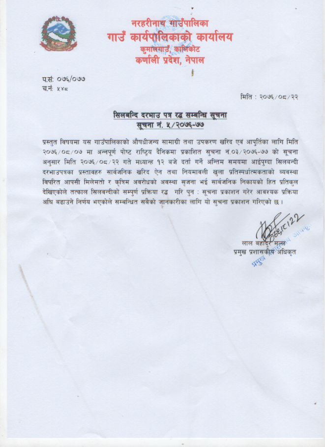 » सिलबन्दि दरभाउ पत्र रद्ध सम्बन्धि सूचना