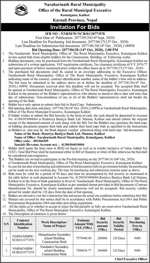 सार्वजनिक खरिद/बोलपत्र सूचना