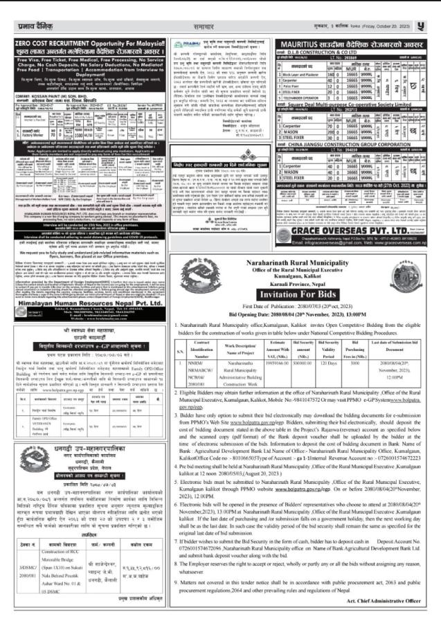 सार्वजनिक खरिद/बोलपत्र सूचना
