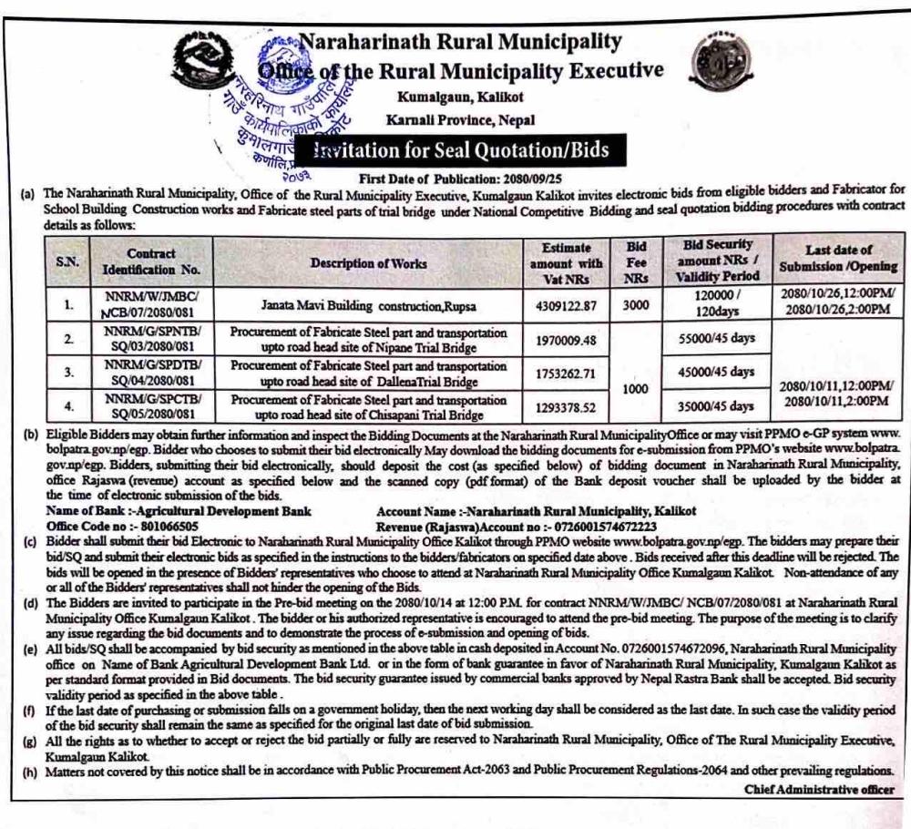 सार्वजनिक खरिद/बोलपत्र सूचना